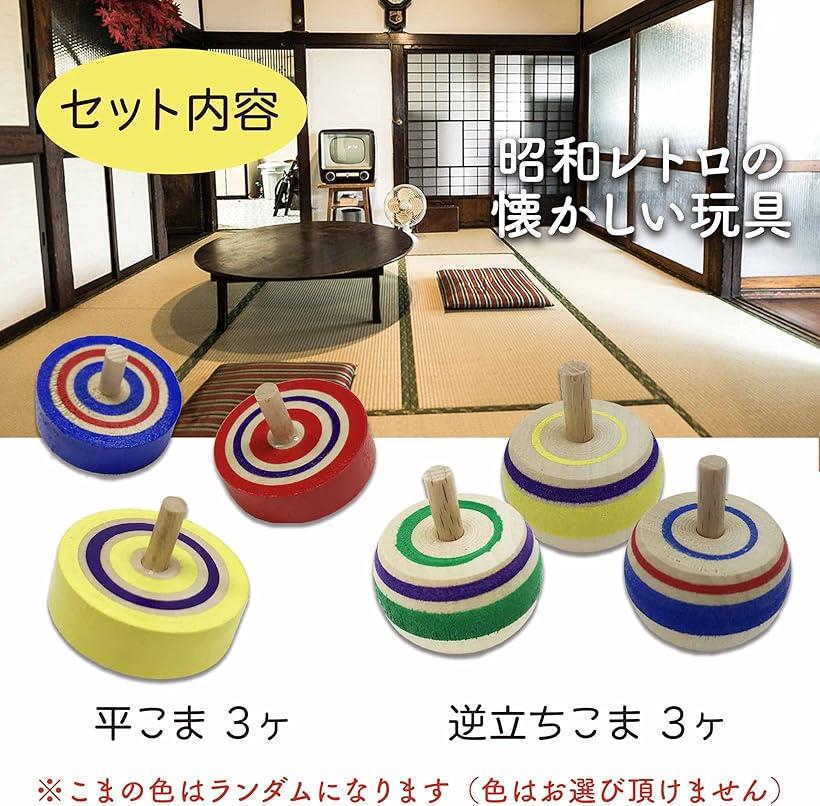 昔なつかし手回しコマ入門セット 逆立ちこま 手回しこま 知育玩具 木のおもちゃ 男の子 キッズ 2種セット(逆立ちこま3個、平こま3個セット)