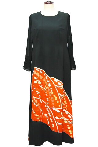 <この商品はメール便非対応商品です> サイズ 13号 バスト:109cm ウエスト:95cm ヒップ:118cm 丈:130cm 素材 表地:正絹(シルク100%)、裏地と袖:化繊 状態 新品の留袖からリメイク 製造国 日本 オーダーメイド、レンタルも承っております。