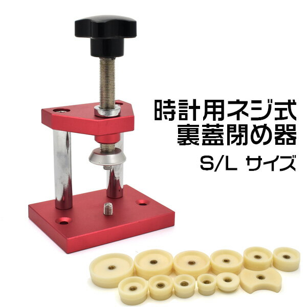 【送料無料】時計用ガラス&裏蓋閉め器 Lサイズ 時計用工具 ネジ式挿入器 コマ12個付属 メンテナンス 電池交換 裏ぶた ネジ式裏蓋閉め機 DIY 業務用 【ywx203-l】